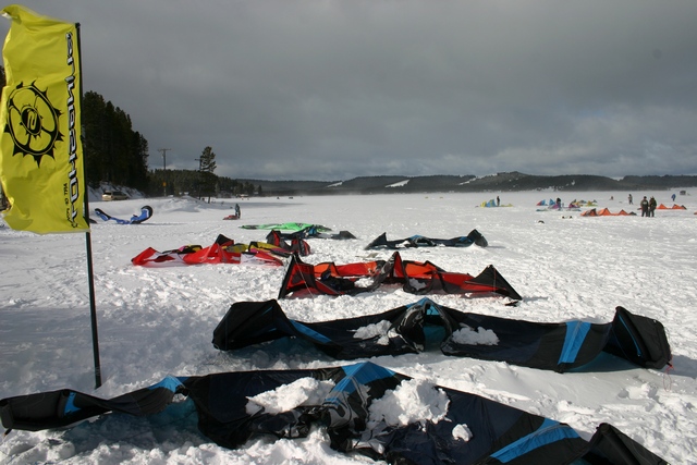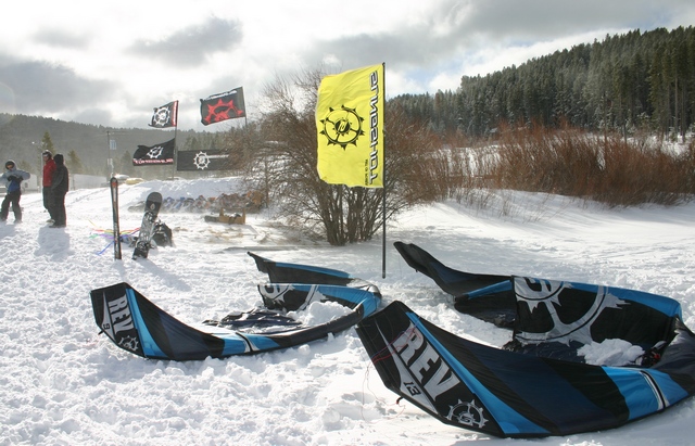 Demo's went killer on Saturday, with high wind ranging 18-25 and about 3-4 inches of freshiz on the lake! It felt like butter out there! Buzz was on the 7M-9M Revs that day and riders were stoked! I could here them yelling Yahoooo...! this Rev is the sickest snowkite ever...!