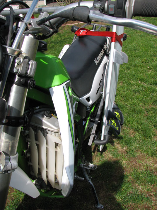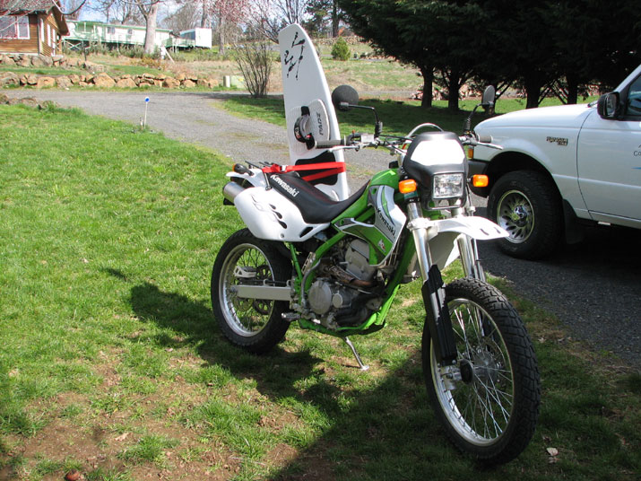 Anyway, this is what I rigged up for my KLX300 this season, doubt I will go any further than the Gorge with my bike and kite gear. I’ve been up to 60mph with minimal turbulence.