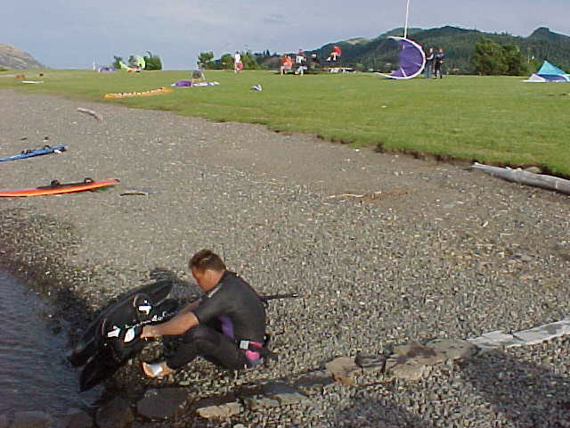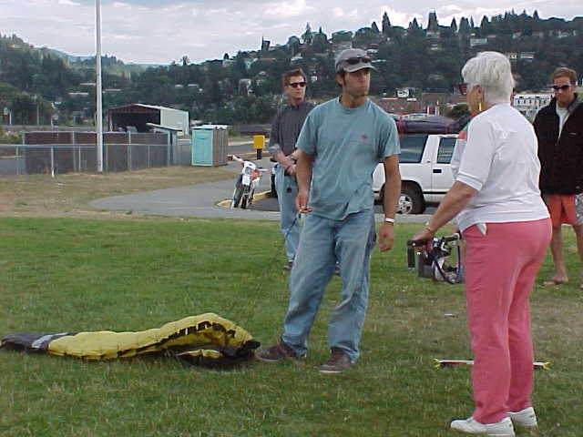 Crazy Jerry: This is a great couples sport (Kara smiles) one person launches the kite and the other flys it (thinking that's nice)