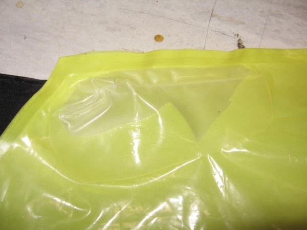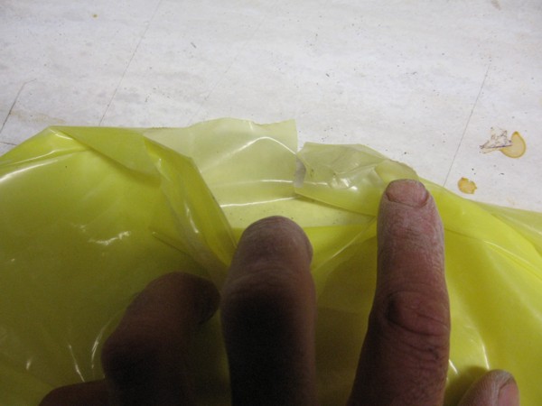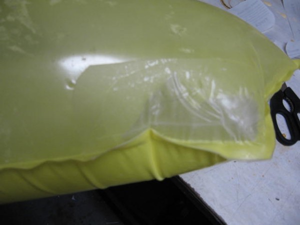 2. So you can see I have a nasty hole right on the seam. i also have a SUPER nasty rip in the tail end from snagging the bladder on the edge of my table saw Sad