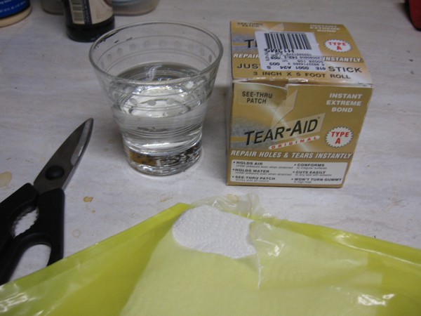 1. your going to need some tear-aid Type A. Get it online. Your also going to need some rubbing alcohol and some scissors.