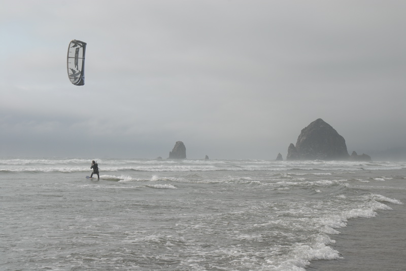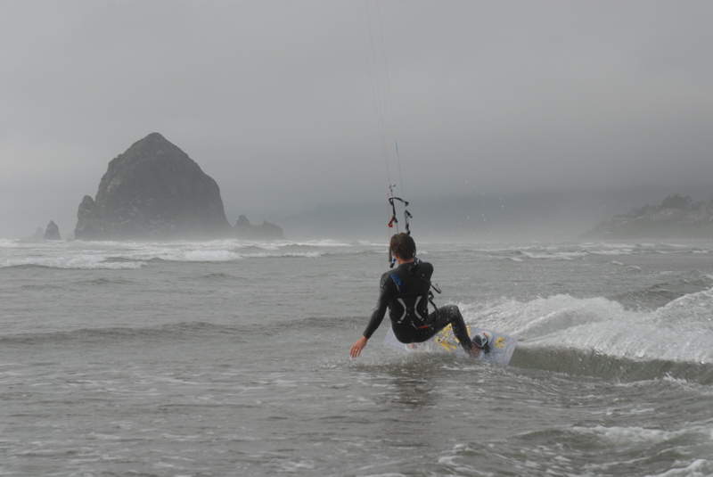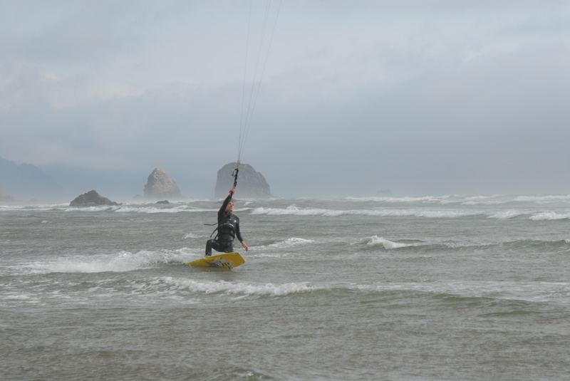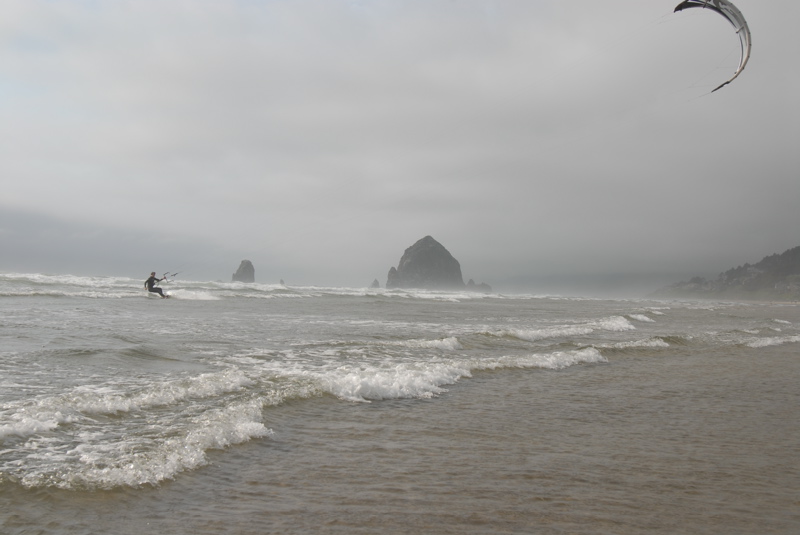 There was no wind in Manzanita, but I saw white caps at Cannon and went out and was happily overpowered on an 11m. Here's some pics my friend snapped.