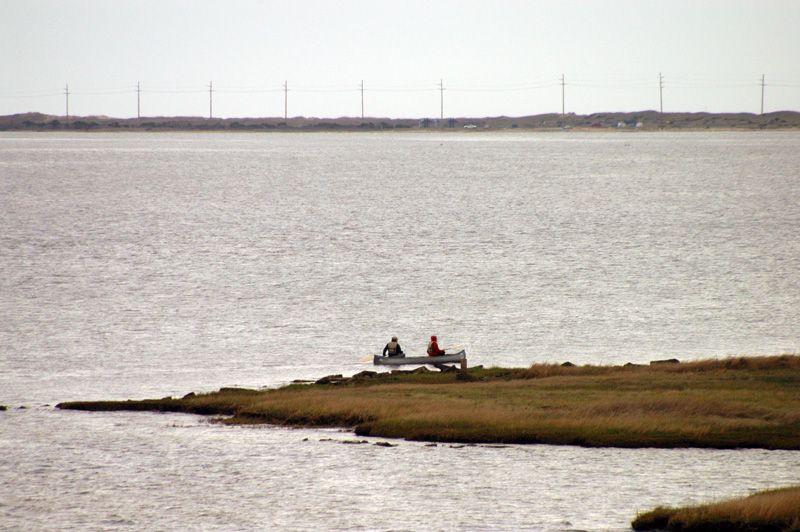Light wind day & cold a shit in early April - Cape Hatteras, NC. Convinced Esther and my brother to do a 2 mile downwinder in a CANOE w/ kite to kite beach. This is much harder than it first may sound . Relaunching a kite from a canoe sucks. We were all fozen stiff - completely wet - canoe full of water. After a super shakey & very cold hour, we made it to kite beach feeling lucky to be on the sand. A guy looks at us and said ' that looks cool ' .