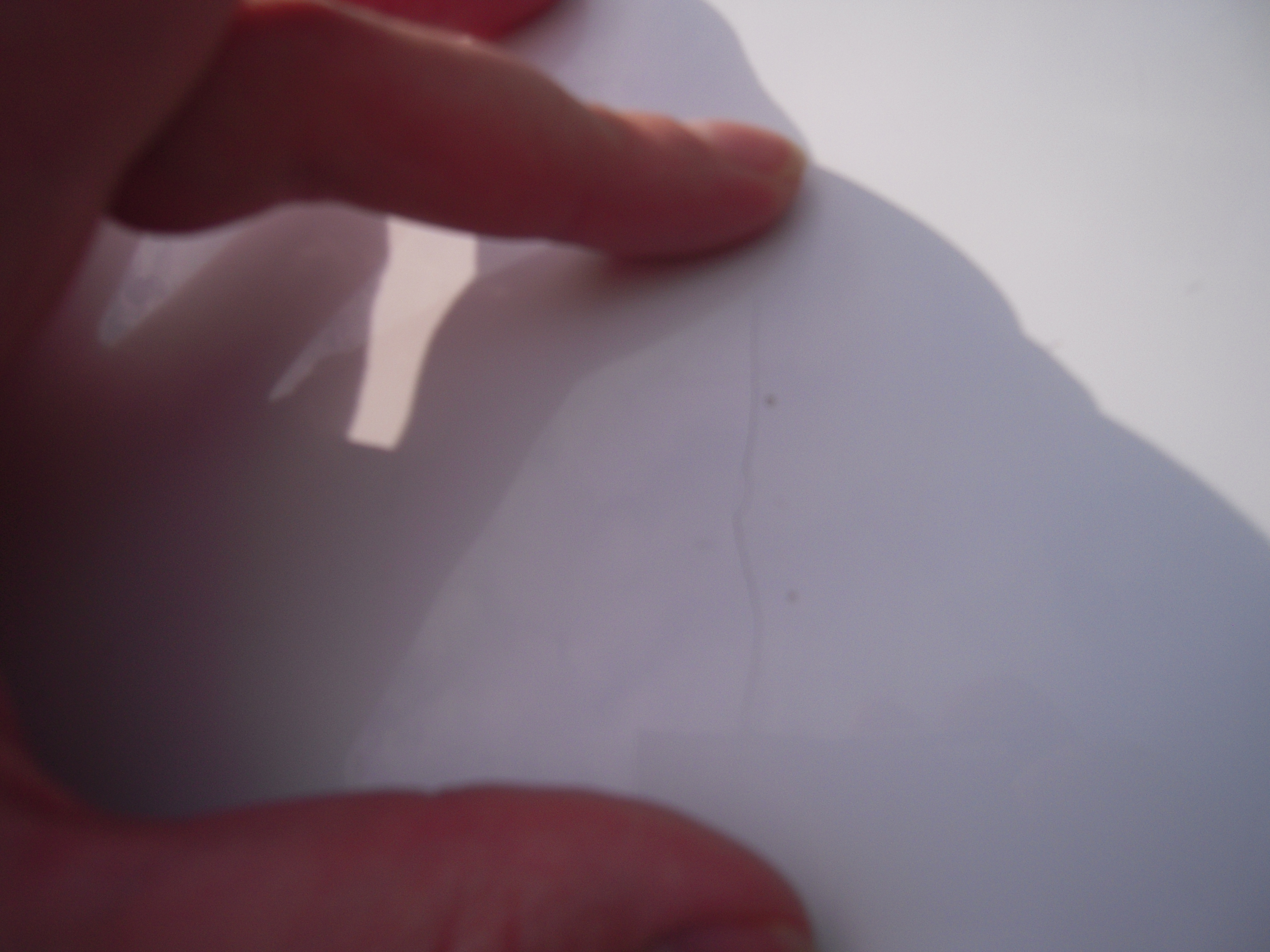 On a side note, I did notice a couple of flaws in the bottom surface, (2 dimples), adjacent to this crack. Makes me wonder if there isn't a flaw in the board's structure that happened in manufacturing, and if trying to fix the problem from the outside would be like trying to put a Band-Aid on my knee that's blown out. Kinda futile.