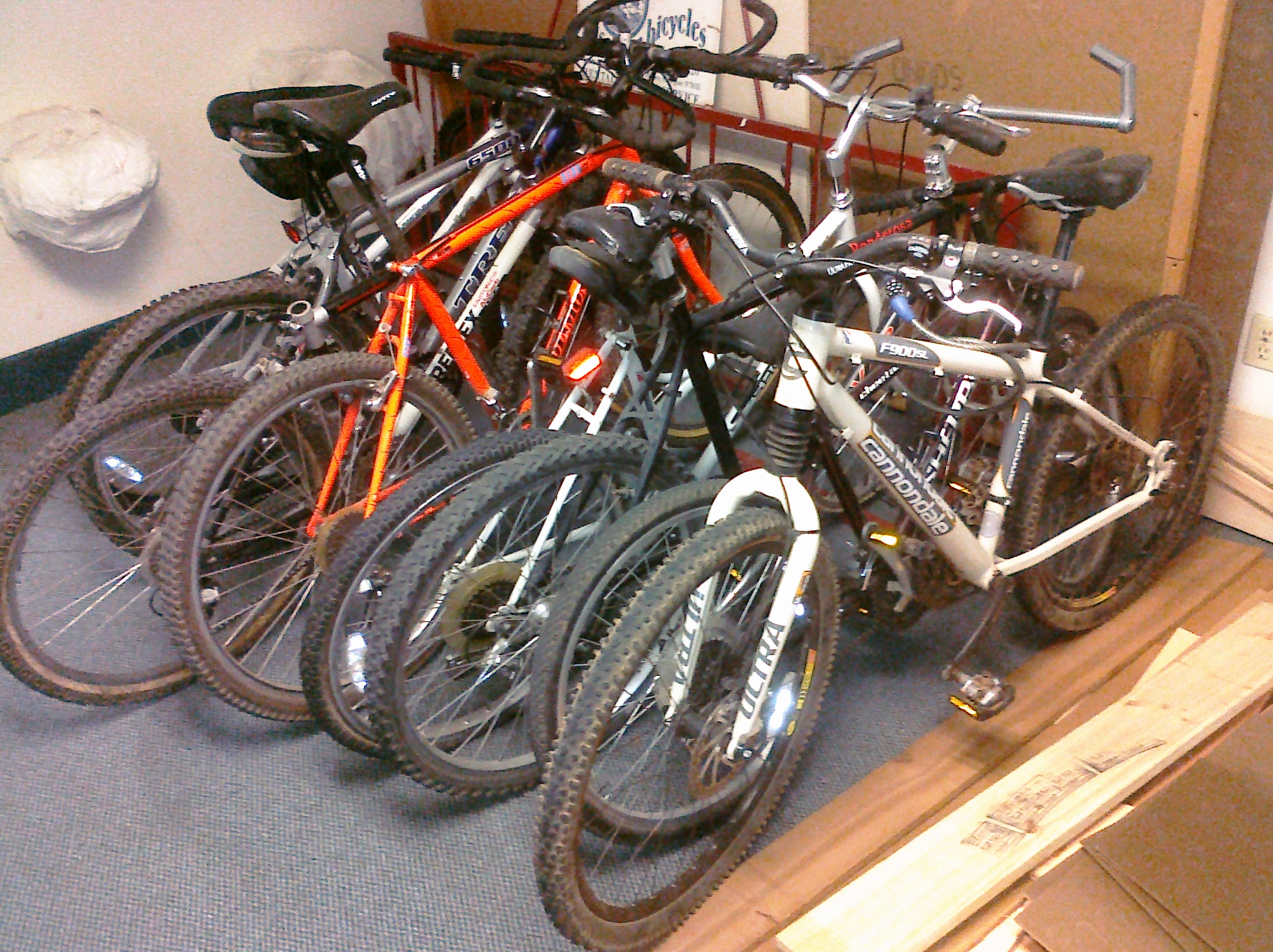At this point I have 5 working bikes. 3 of which are really nice and 2 decent. I have an xl frame, thanks john, that needs brakes, derailures and shifters, and it will be an awesome big kid bike.