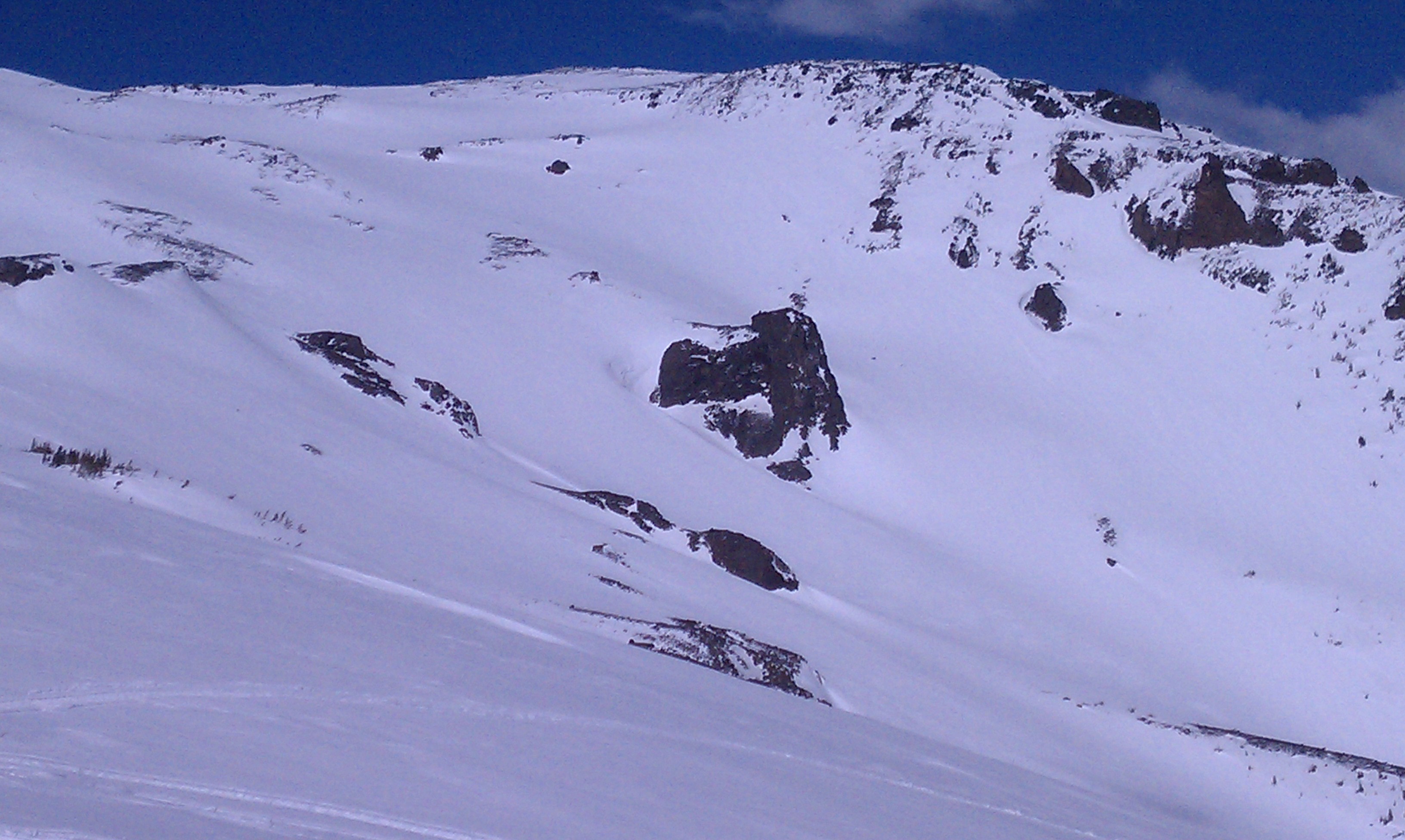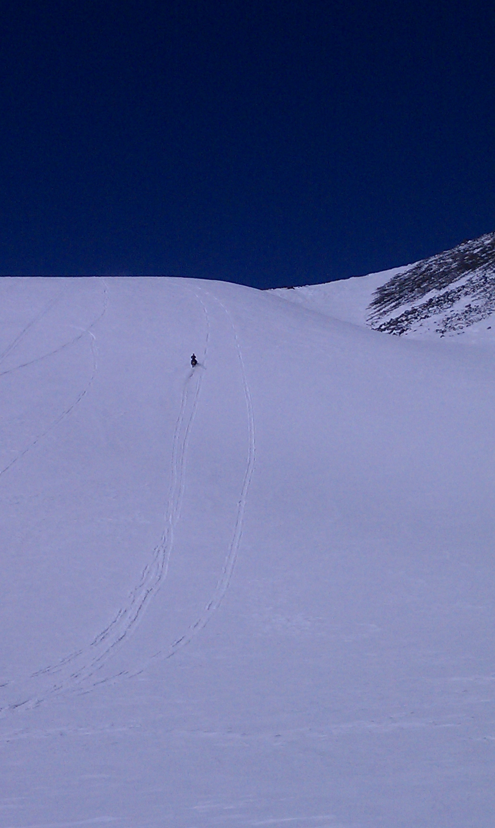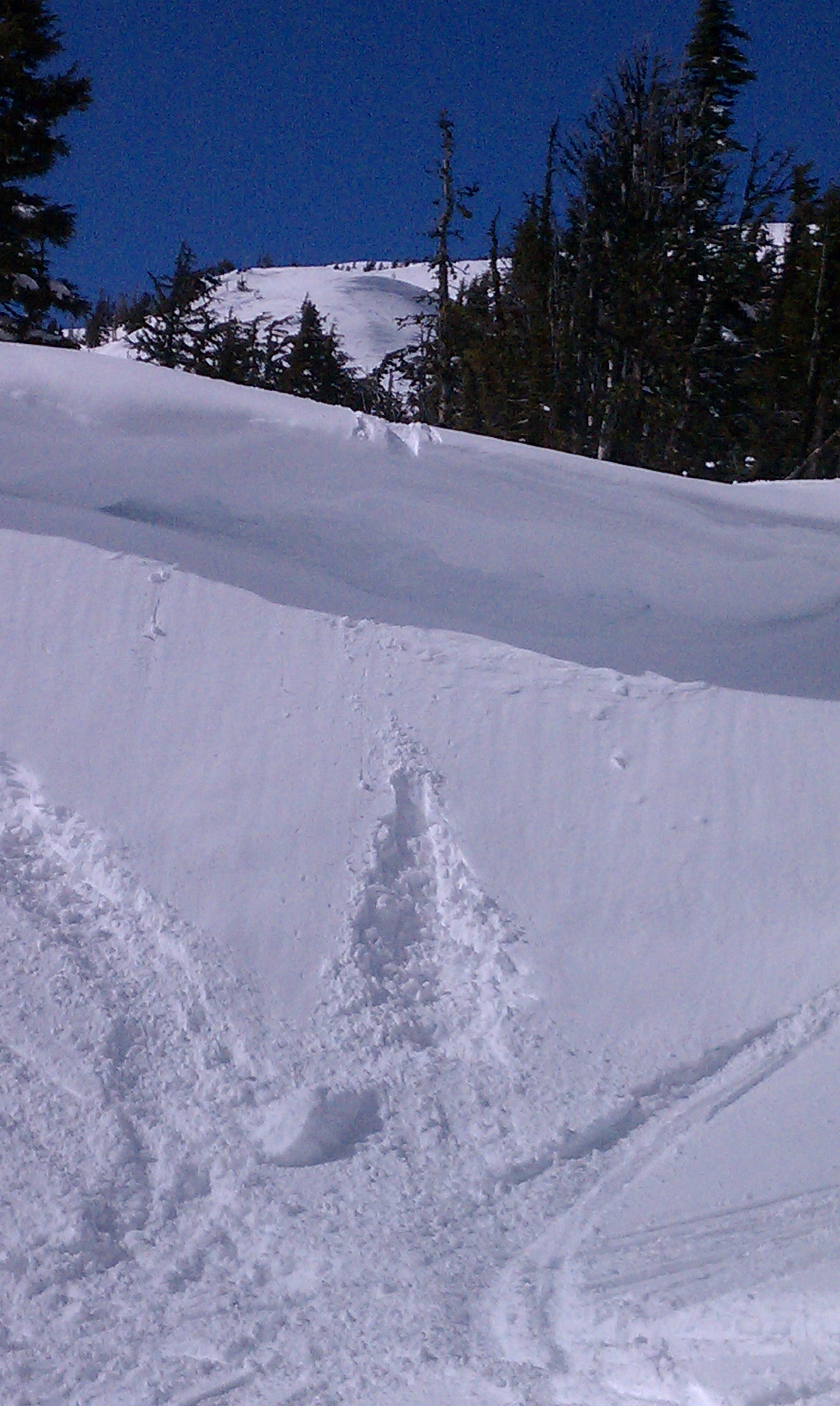 Absolutely perfect day on Mt. Adams today and there was kiteable wind as well. There were a few times where I was pissed that I didn't have any kites in tow. However, the reality of snowkiting on Adams would take serious effort. From Snowking sno park your looking at approx 12 miles of whoopdeedoos up to treeline, from there is multiple options depending on wind direction. I think the sickest thing ever would be to Kite out of Hell roaring canyon on southeast wind right up the SE face. To accomplish such a feat, you would need to have advance snowmobile skills (aka...be a slednecker) lucky wind day, and big balloons!
