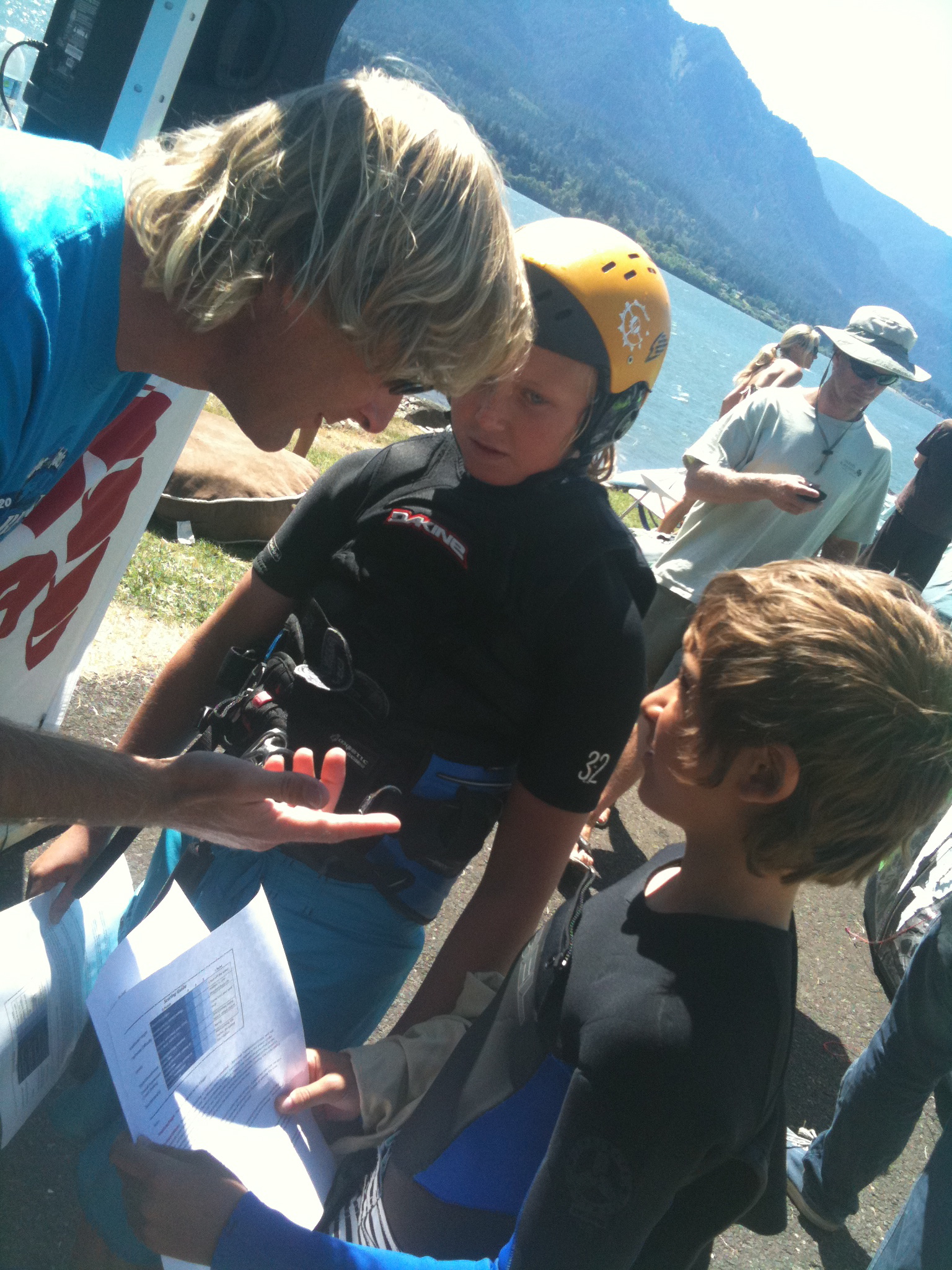 These two Minni Groms were killing it on and off the water! They got hooked up with some sweet prizes too: 1 year subscription to The Kiteboarder, Scoop of Ice Cream from Little Viking in Stevenson, Head Phones from Doug's Sports, Transcend and Dakine hats, cash, and Slingshot Harness. Thanks sponsors!