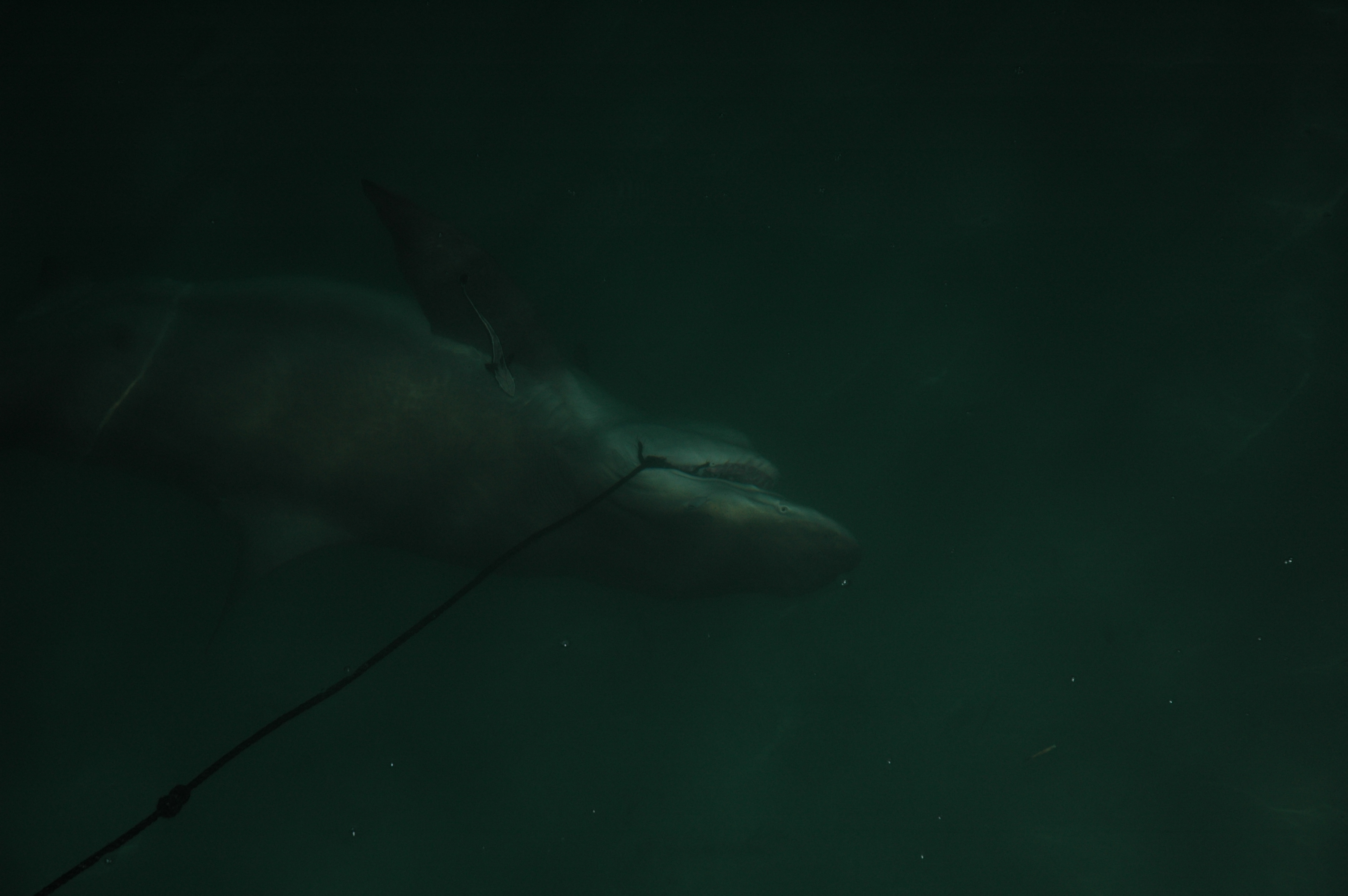here is a pic of a man of a Bull shark in the basin right where you guys were using as a landing zone at sunset.im sure you have met them by now.