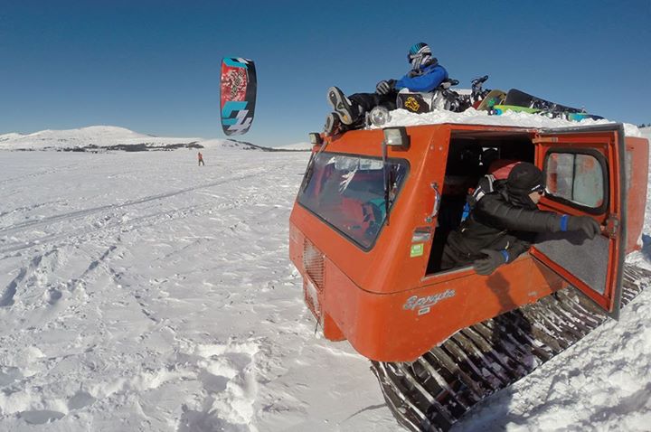 Our daily routine at the Summit was very special. We would awake to the lodge’s fire-warmed great room, fill up on a huge breakfast, pack our personal lunch and snacks for the day, load one’s snowmobile or pile into the lodge’s snowcat with our kites and boards and migrate out to one of the day’s predetermined kite spots for a day of snowkiting. Day after day of this routine was magical.