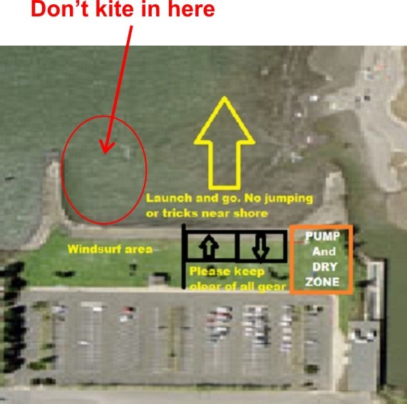 Kiters ! This is a great privilege to be able to continue to use this area for launching and landing. Do your best to help keep it a safe zone, catch a few kites, assist in landing and politely warn spectators who are standing in the hot zone.
