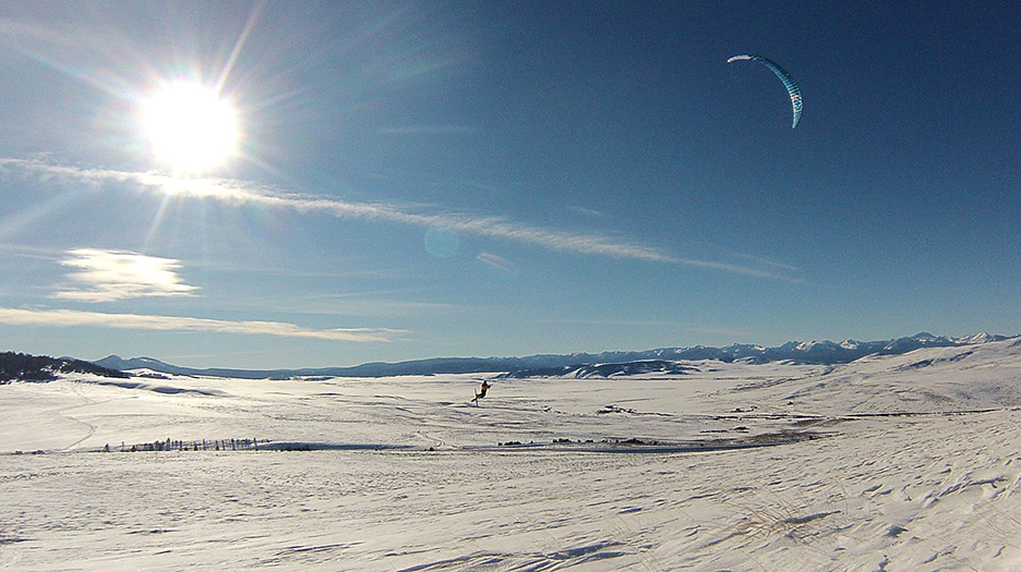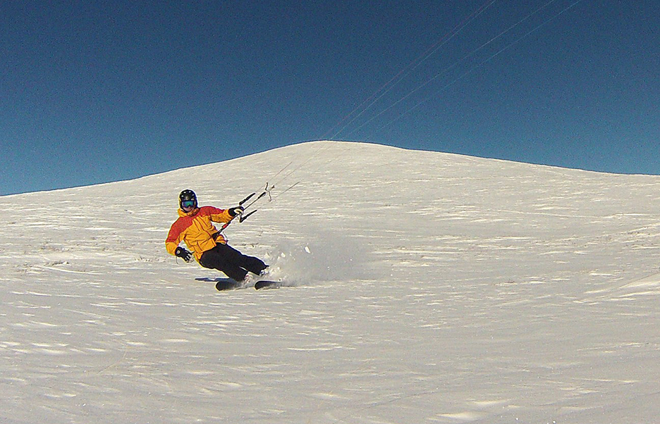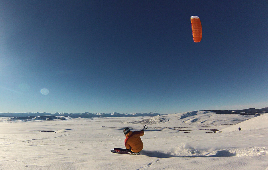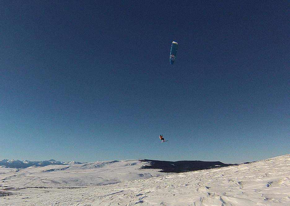 I hit the N side first on my 15m Chrono and then joined my friends on the S side at the first ramp. It was too light there to glide so we mowed the pow as best we could. My first session there was on the 15 Summit Ultralight with a finishing sess back on the Chrono.