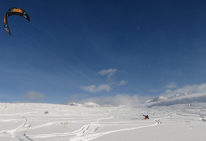 For a while now I have had dreams of hitting a certain favorite kite spot with certain specific elements: powder, sunshine, proper wind, a good friend... This dream came true the other day!