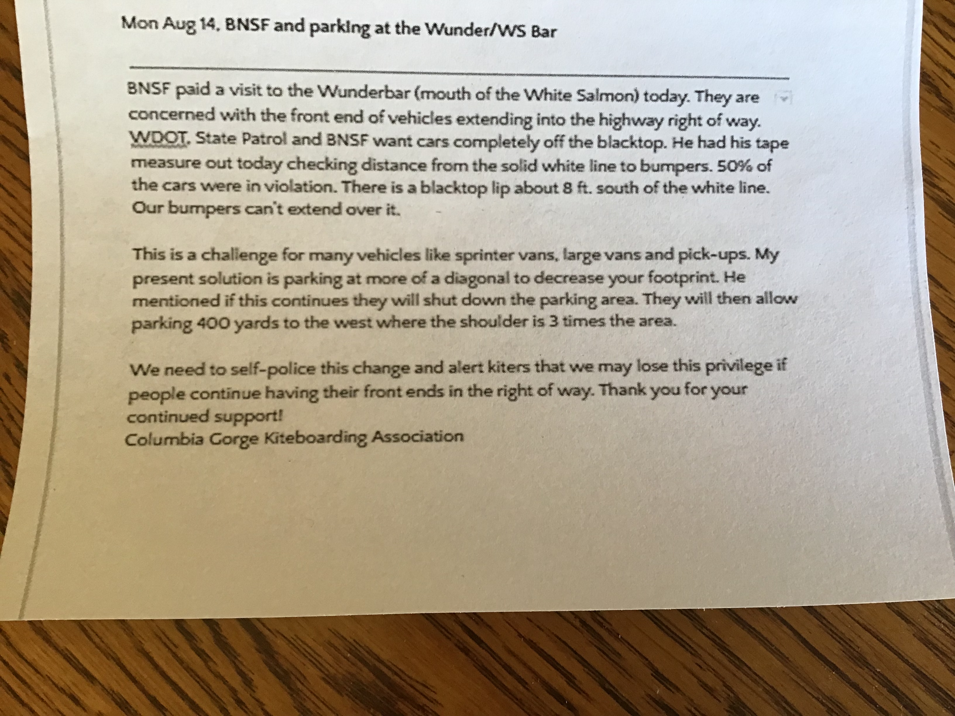 We had our first 2019 wreck at the Wunderbar today, July 13. Don’t know the details but messed up traffic for a while, one car towed away and the other was able to drive away. The State Patrol is watching the s___ show there pretty closely, along with BNSF. Don’t be afraid to speak up when you see the inept and uneducated arrive and create hazards.