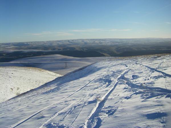 I went up to Dalles Mtn today to check it out. There was about 3-4 inches of snow in the field to the east of the radio tower.
