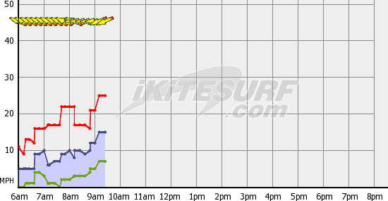I wonder if something is goofed up with the ikite sensor...usually it matches up with the NOAA. Which has been looking perfect all morning. Remember these are the low (lull) readings. Usually there's a 10 mph spread so that means mid teens to mid twenties....