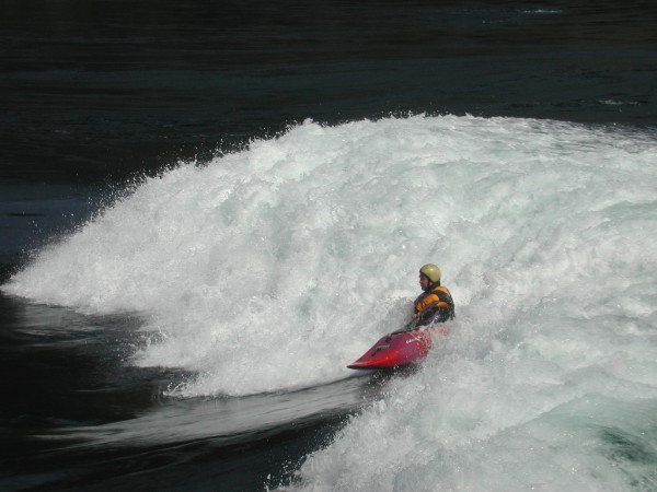Got 37 minutes on this wave (in my squirt boat) - my arms were dead hams - then got to carry the boat a mile and half back through the woods - fun spot in BC