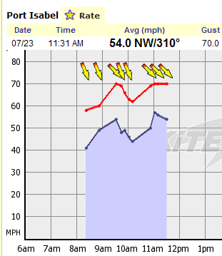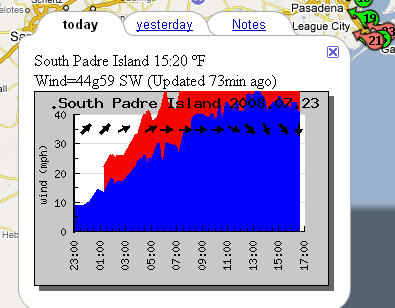Blowing like crazy, hes guessing 80+.