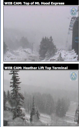 So I checked the SkiHood webcam... and it was raining.. that was like 7am... just checked back on it now and IT IS SNOWING!!!