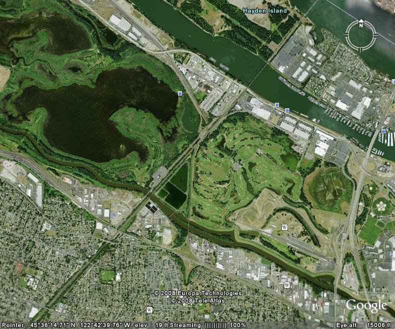 All those little pock marks you see are algal looms. I'm sure all those algal blooms have nooothing to do with Heron Lakes golf course right next door. But, I thought I remember some portland golf fourses going organic so perhaps they are not leaching as much nitrogen as they once did.