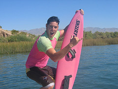 We got a skurfer tho, and stood up on kneeboards.