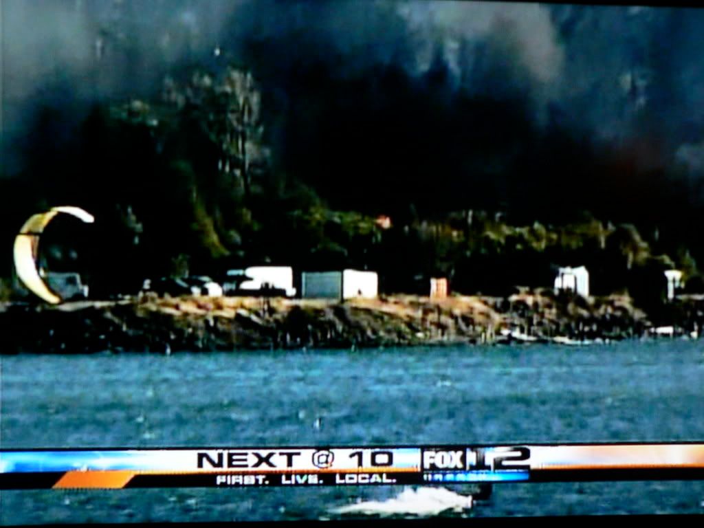 | Just got off the river, the trees along the bank are going up in big fire balls by the Hook. Great view from the WS Bridge area. They closed the highway too and are sending the folks through town. Oh and it's blowing 20-25ish and not to bad by the island, rode the 7m and the surf board.