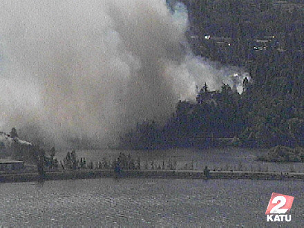 Heard about the fire from Forrest, then heard some dude got hit on a motorcycle ~2 miles west of Stevenson on 14 (and had traffic completely shut down for a while)... We were a little worried about being able to get home with 84 closed as well, but by the time we left at ~4:45, 14 was open. There were so many cars crossing the BOTG, they waived the toll!