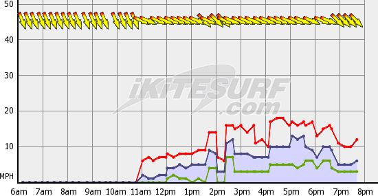 The sensor that iKitesurf uses seems to read about 5mph shy of actual. Maybe it's located back off the river in or near the trees or something?