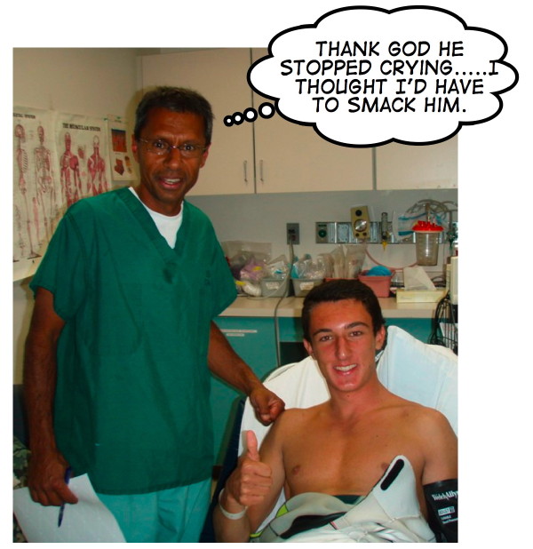 That is Dr. Dick Virk. He is an awesome ER doc! I had a bad dirt bike crash up in Post Canyon a few years back and Dr. Virk was on duty when I came into the ER. I was supper stressed out thinking I had totally fu%#ed up my shoulder and that I would be out of commission for a long time to come. Dr. Virk is supper mellow and has an uncanny way of calming you down and letting you know that your injury is serious but that you'll heal up and be back to doing what you love to do in no time at all. You couldn't have asked for a better guy to be your doc.