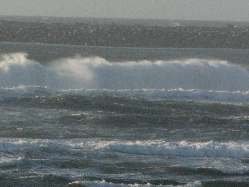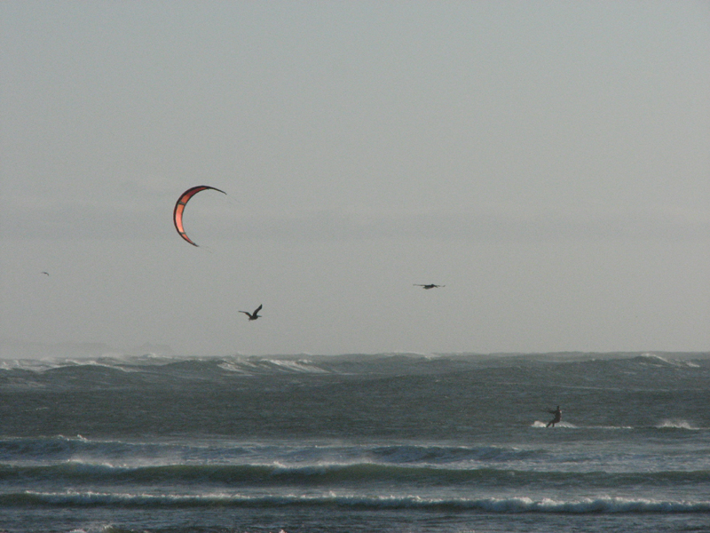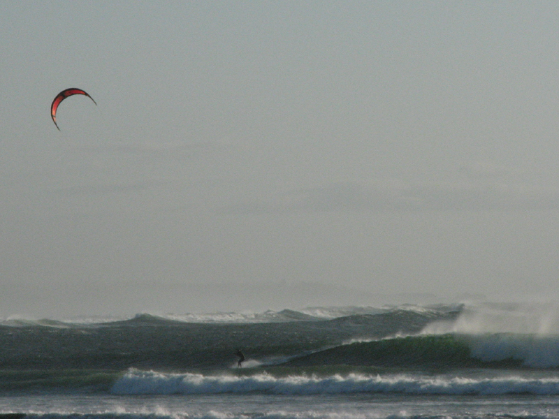 One kiter is out by the jetty - but not mixin it up - he comes in.