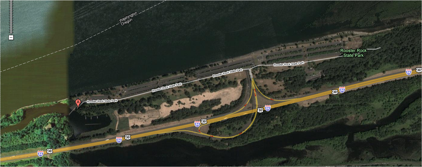 Dude - Rooster Rock is on the 84 east of portland by about 20 miles or so. Its on the Oregon side.
