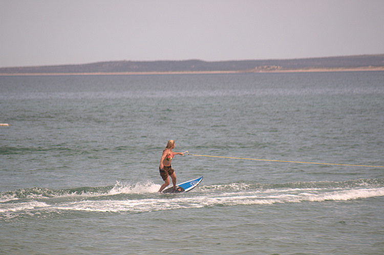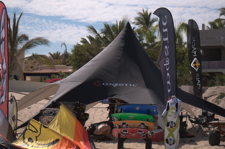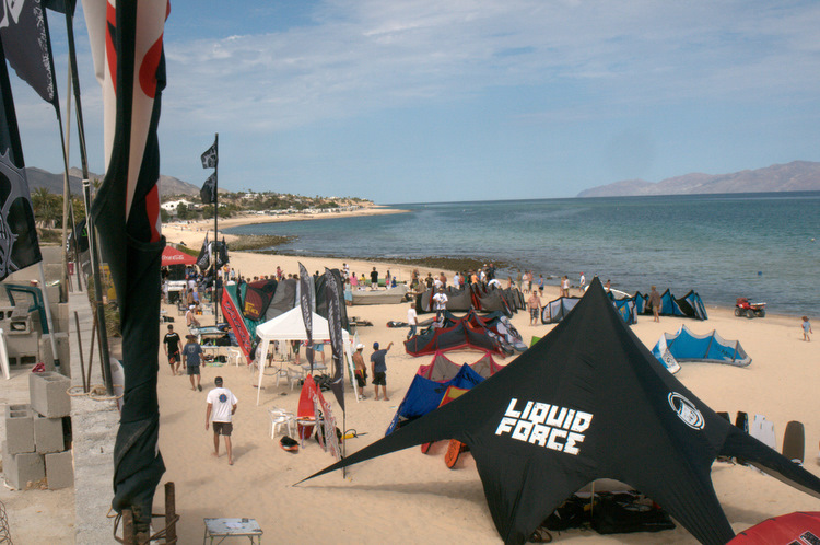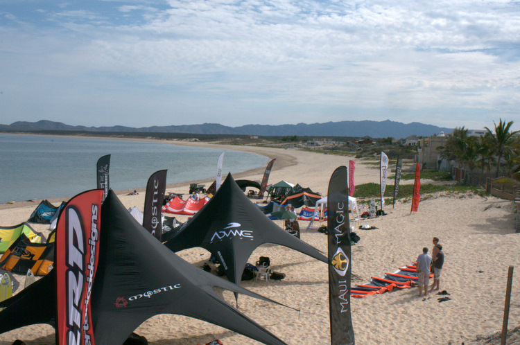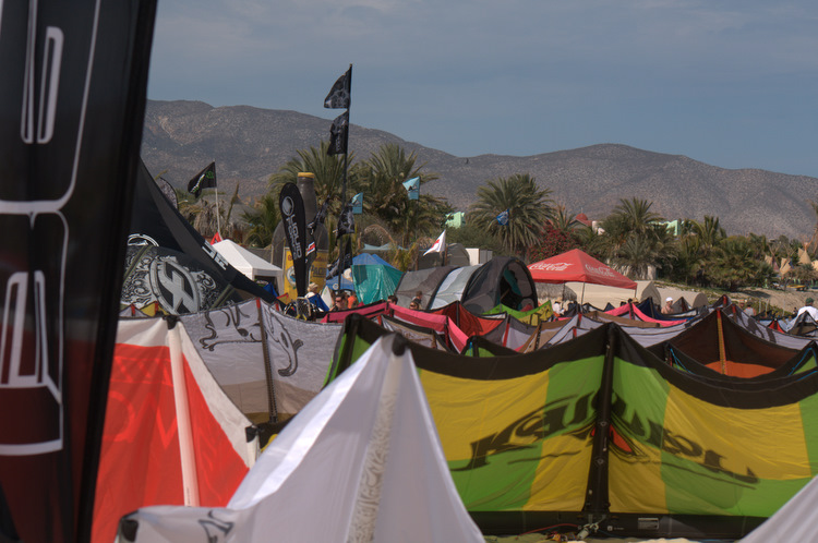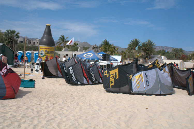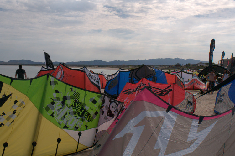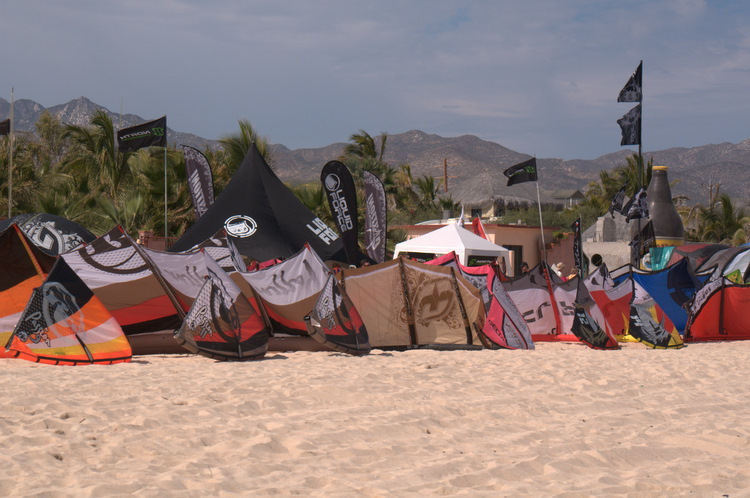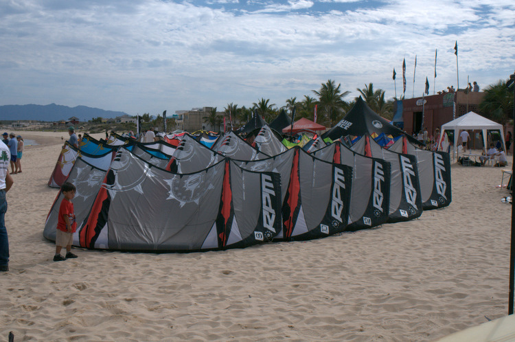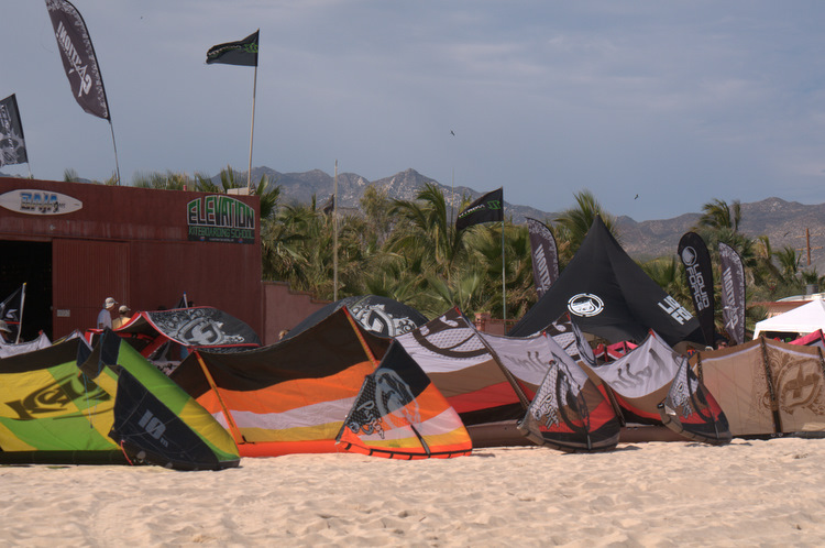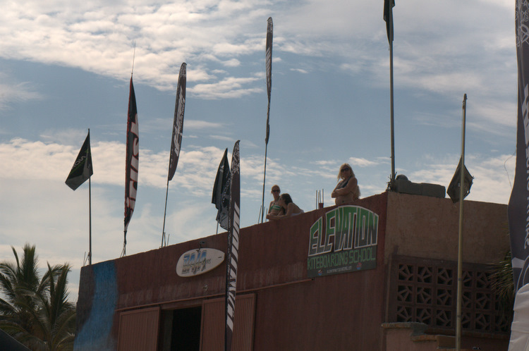 The wind is starting to fill in. A few whitecaps on the water, flags are starting to flap pretty well. Two 14's in the air and Shy just went out on an 11m RPM and a surfboard. Staying upwind just fine. Skies are still clear so it looks like the thermal draw is going to hold and build.