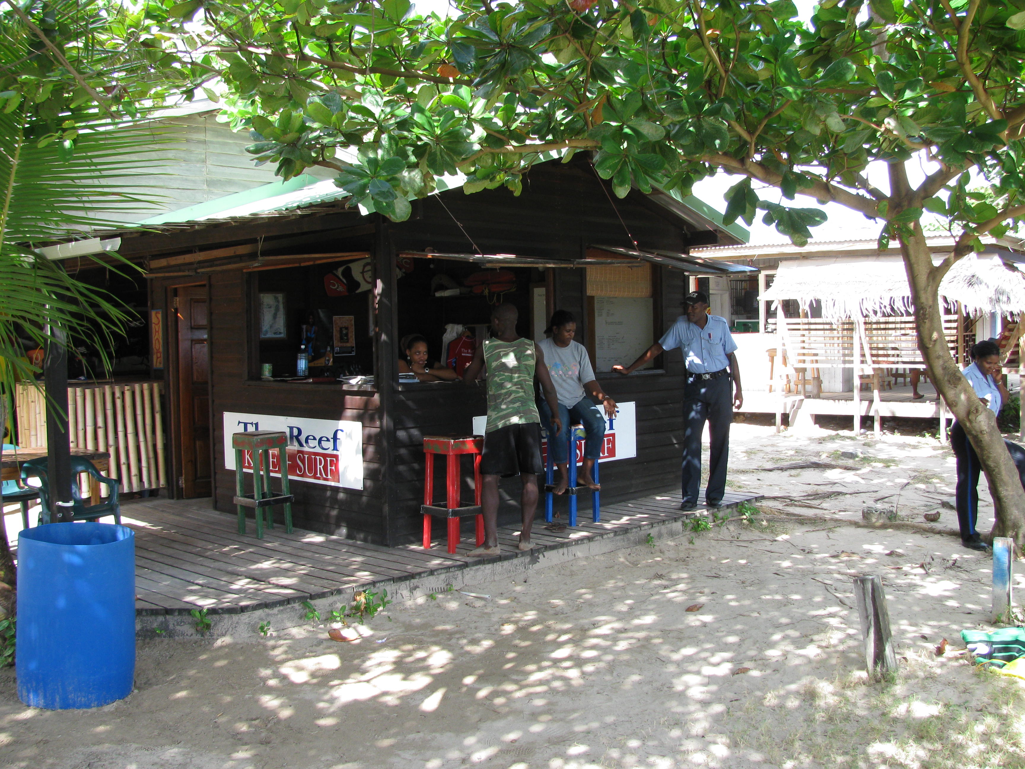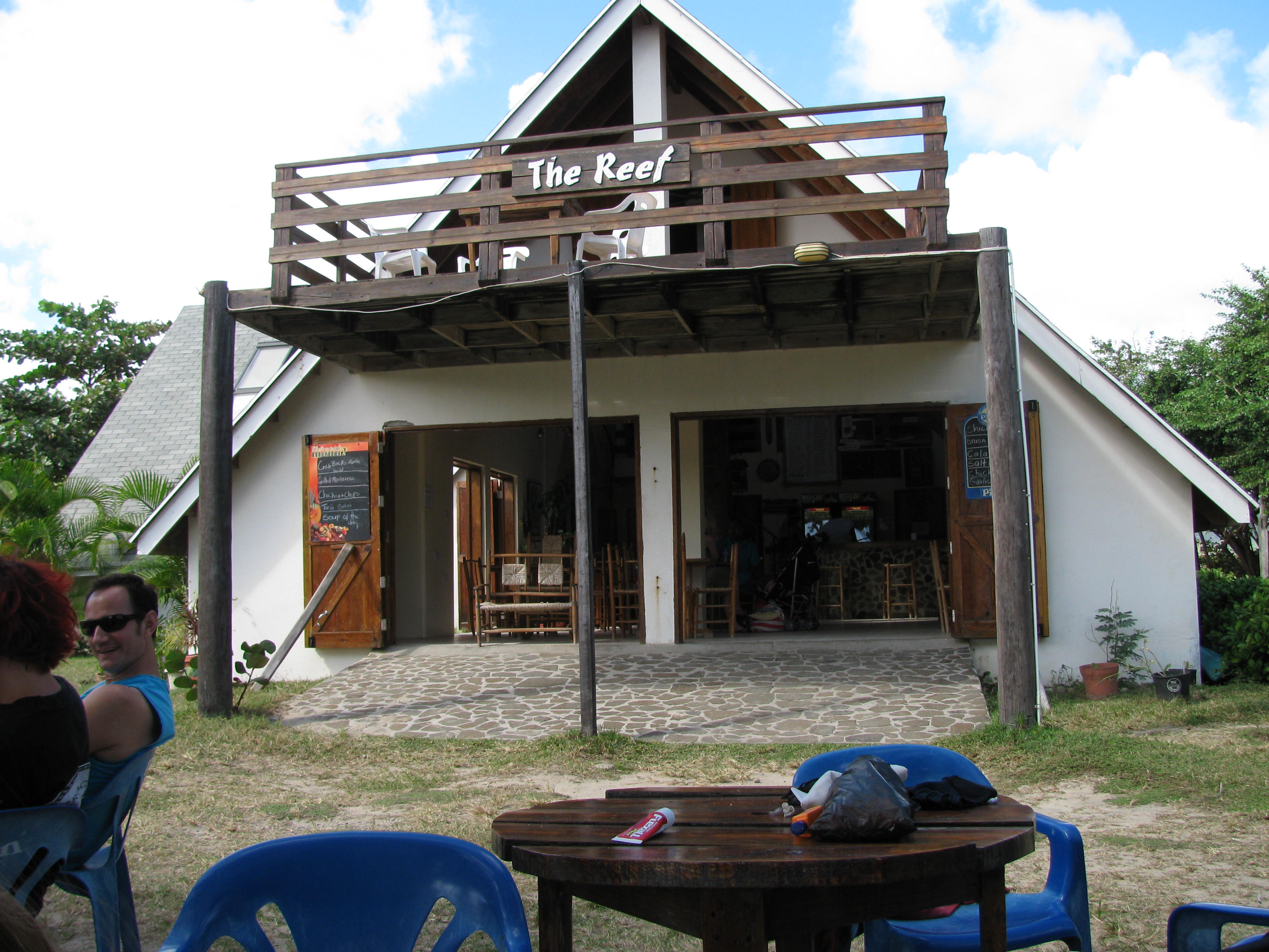 Stayed at the Reef . It's a small place with only four rooms and a bar with food . It's about five minutes from the airport ( Hawenorra ) at the south end of the island . They charge 60 a night for the room and this includes breakfast . They have wifi .