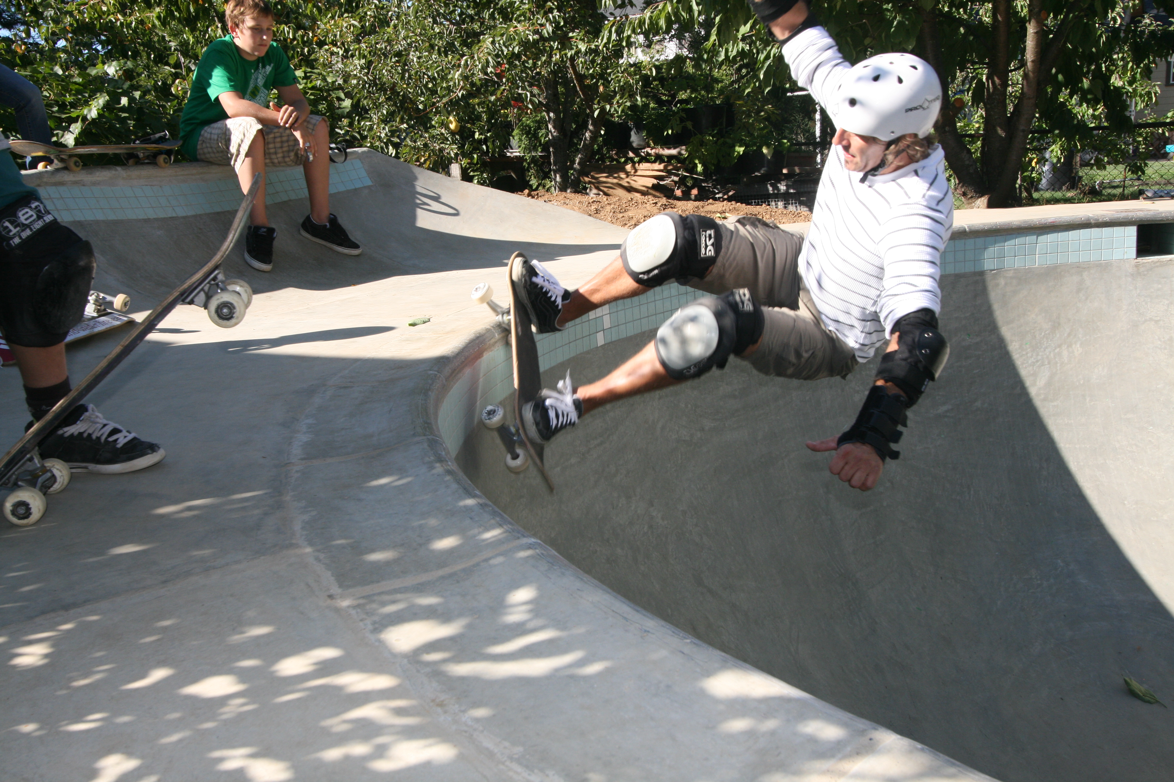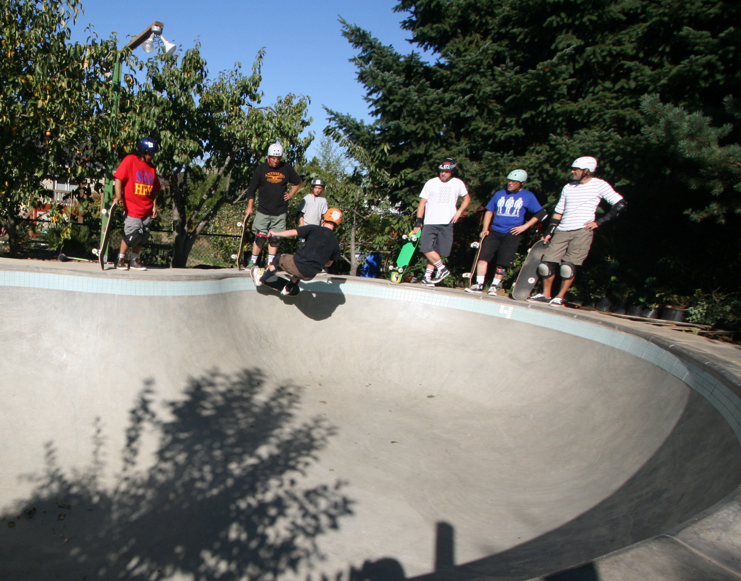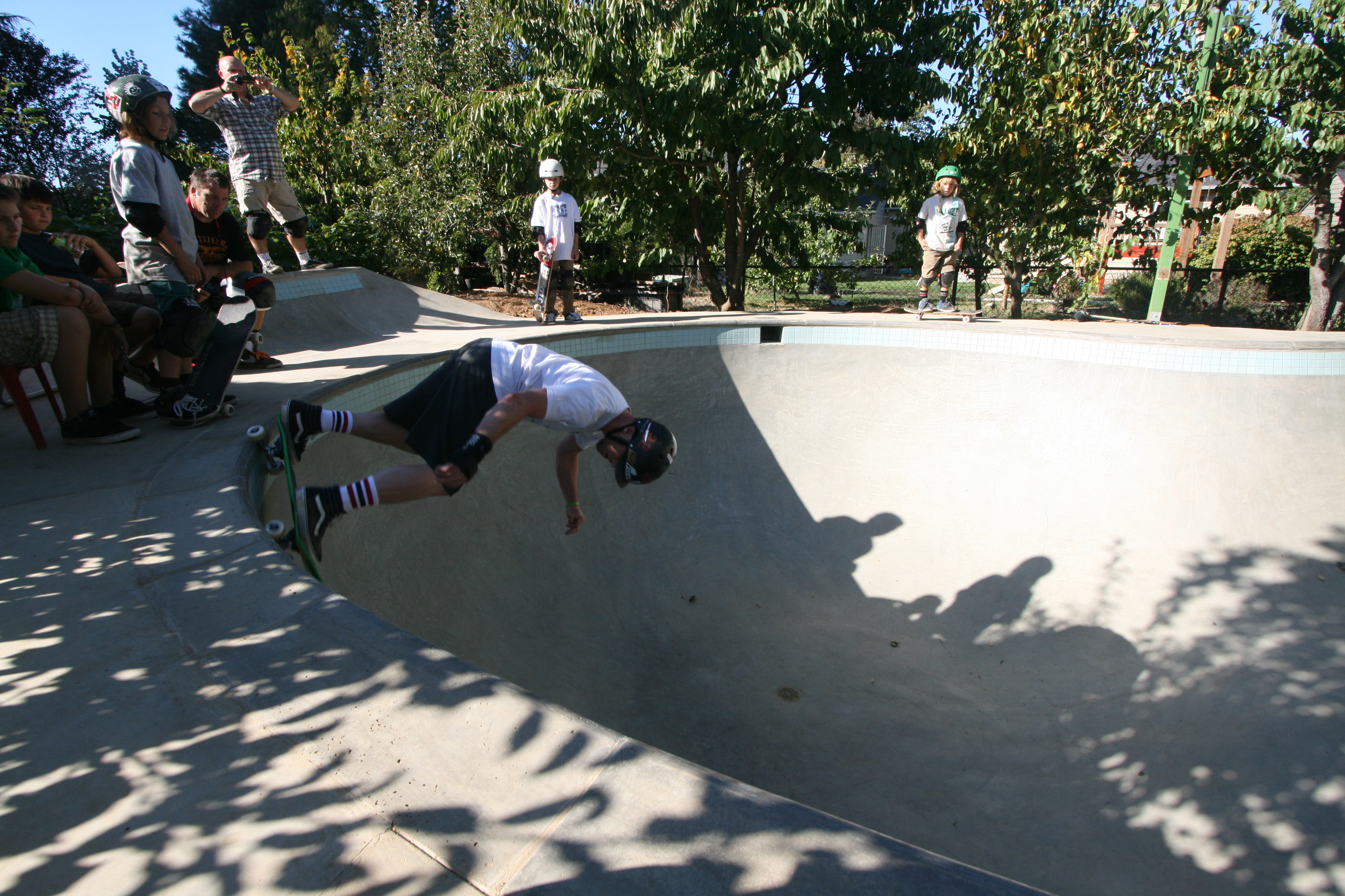 Had a nice back yard session with a few friends and a few new ones! The photos suck, but you get the idea. Jeff is the guy in the white shirt with the green board.