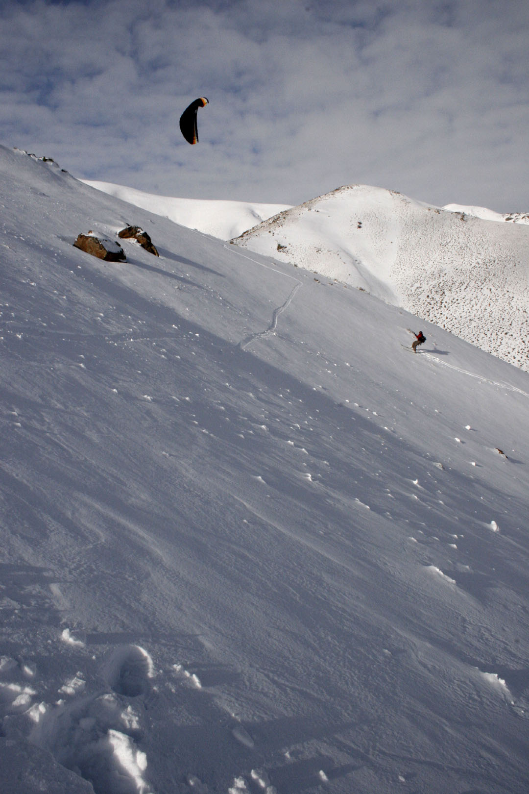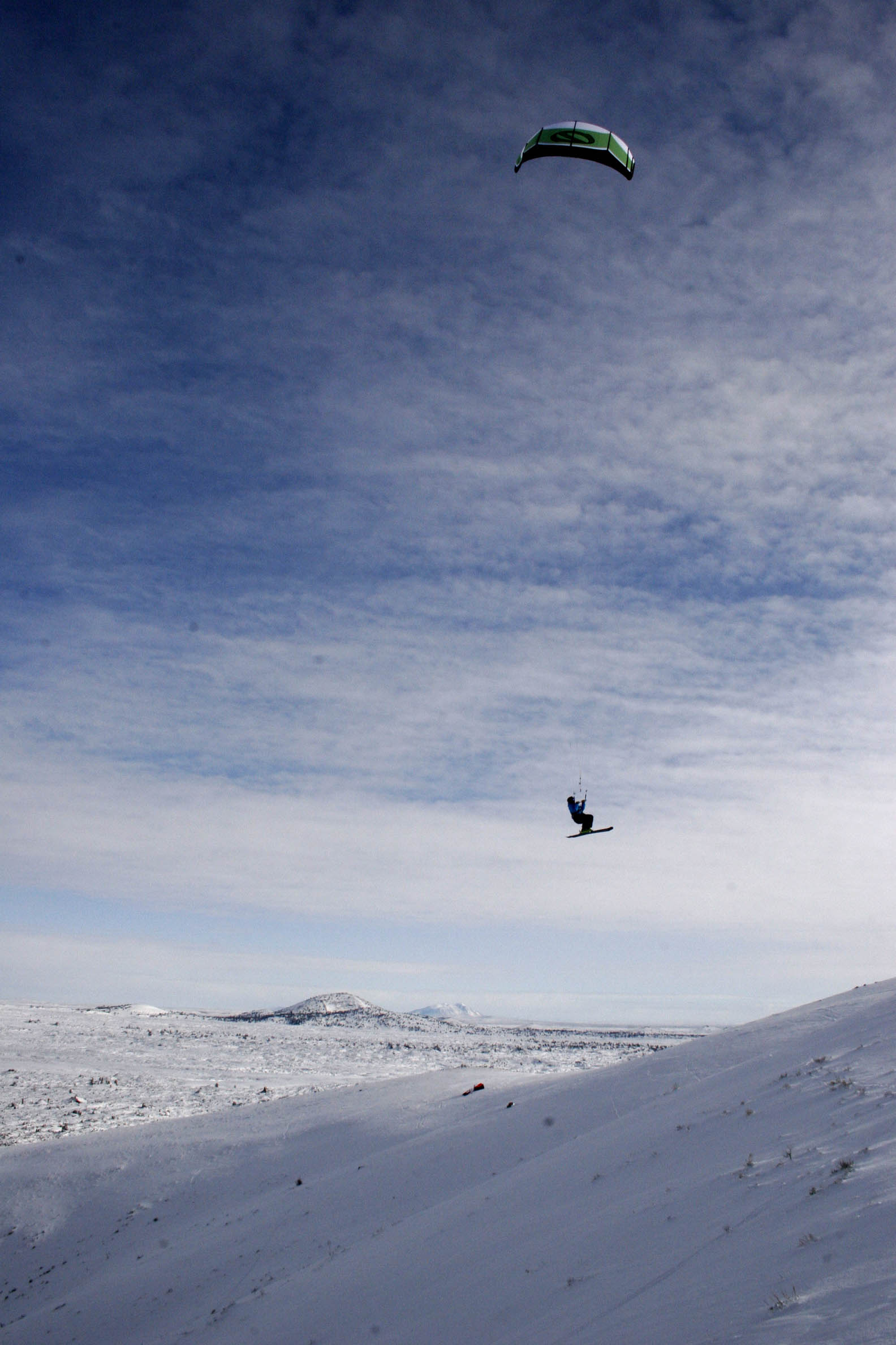 | Friday at craters of the moon was incredible! Blue sky and 15-18 mph wind from the ne. The boys were flying off the hill! Once again pascal sent it from the top with his speed wing. After climbing over 3000 feet with his kite. Y'all need to hit up this spot! It has a very predictable wind that happens during high pressure. I will post some pics as soon as there uploaded! We also rode at pine turnoff on sat. It pretty much was whiteout conditions. There is a firm base that you could walk on with new snow falling. There is a lot of terrain to play on! Later!