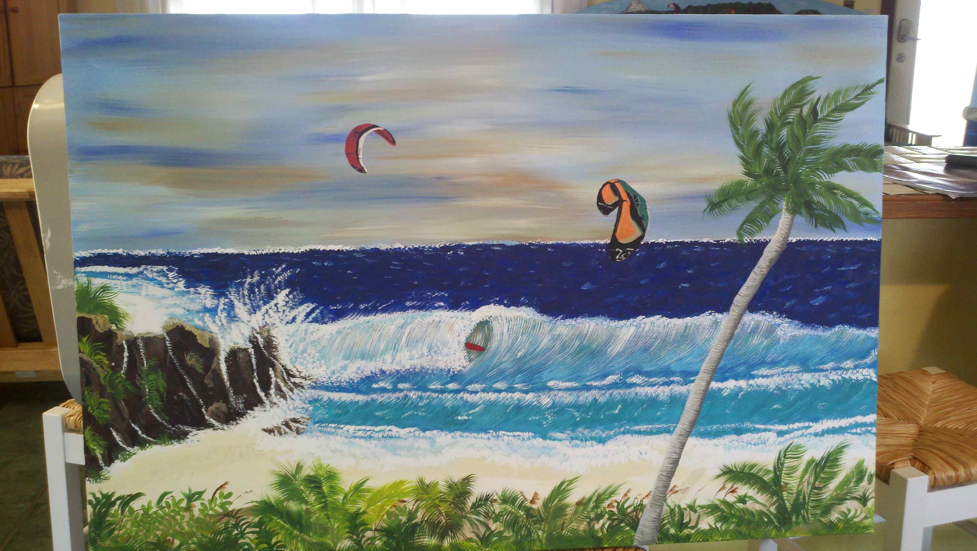Just a heads up that this painting is a donation to the fund raiser that is a part of the Pismo Beach Kite Expo for Kinsley Thomas Wong of Xtreme Big Air. Last year you could get raffle tickets via pay pal or something and not have to be present to win. You just needed to pay shipping or have someone bring it to you. I scored some sweet wine last year. Anyways, this painting will be part of it. Contact Marina if you want to get in on it or maybe she can chime in with some info. This painting is 3' x 2' and would look great in your home!