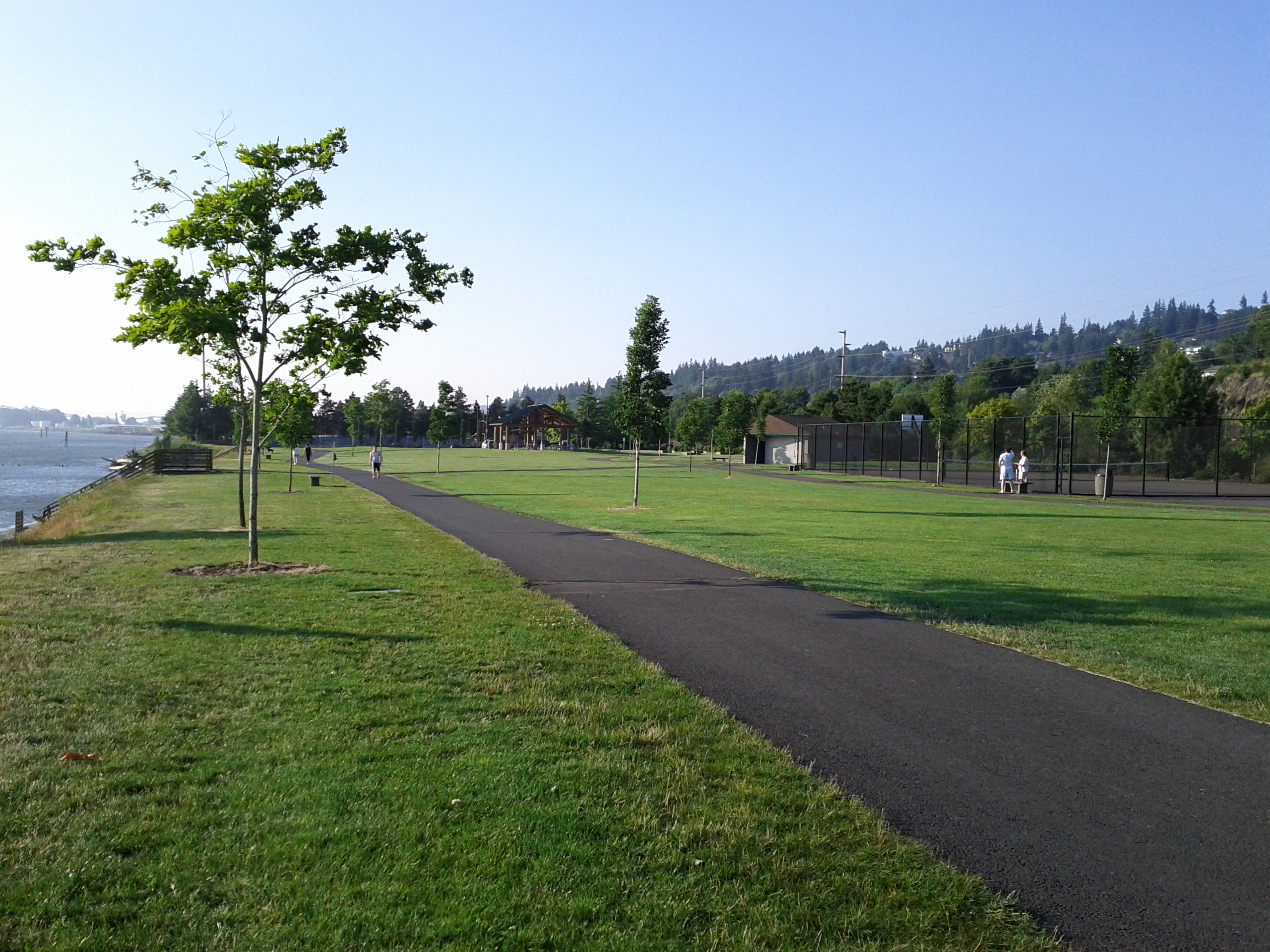There are plenty of people walking along the paved paths in the park but never too many to impede launching and landing, particularly if you are there with another kiter. The people at the park are generally very excited when they see kiters there. Even the fishermen. Speaking of fishermen, there are usually a few dotting the shoreline down by the banks of the river, so you have to watch out for them. In general there are not enough of them to get in the way, particularly if you launch farther north in the park where the water is right next to the bottom of the hill.