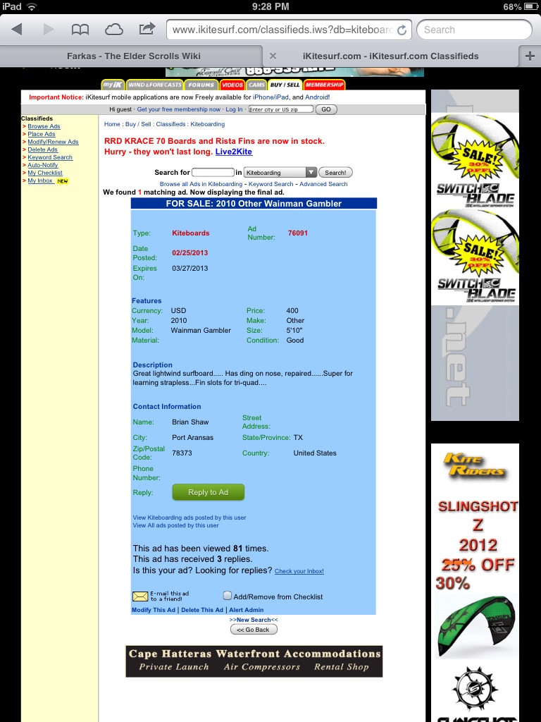 Fri Mar 08, 13 1:57 pm Looking for Wainman surf |