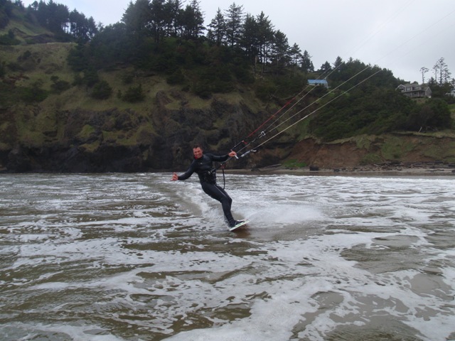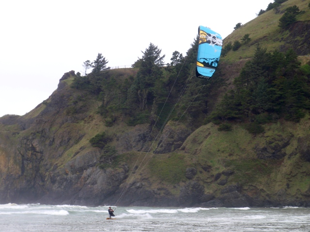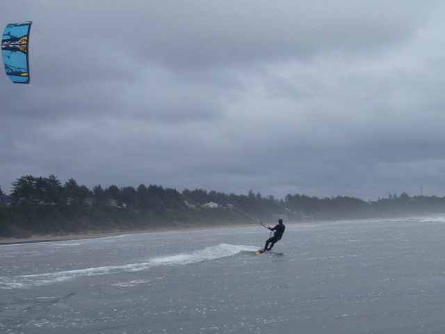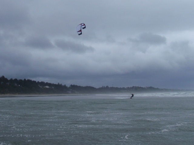 In Newport area last Saturday the wind started out light ESE in the morning. Then, it went psycho ballistic due south winds midday and too extreme to kite until late afternoon around 3 pm it abruptly turned due west and mellowed to a more comfortable 30 knots. I ended up kiting at Agate Beach on my 7m Rally and it was dreamy perfect with butter smooth slicks on the inside with fun whitewater lines and surges moving thru the slicks. Incredibly fast kiting through the slicks would allow for huge backside boosts when the waves moved through. Since it was west wind you could boost jumps on either tack and land back in the same wave that created the ramp. Not sure why some kiters write off west winds at the coastal beaches as substandard or unkiteable, I think they are some of the best that storm winds have to offer. Attached photos are not of last Saturday, but they show what due west winds can be like when it is truely straight onshore.