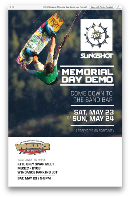 Wed May 20, 15 11:07 am Slingshot Demo Saturday, May 23rd HR Sandbar |