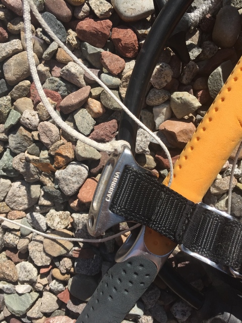 Eventually the stopper comes down and seats below the metal clasp (see first pix). This set up allows for the release of the kite when in trouble.