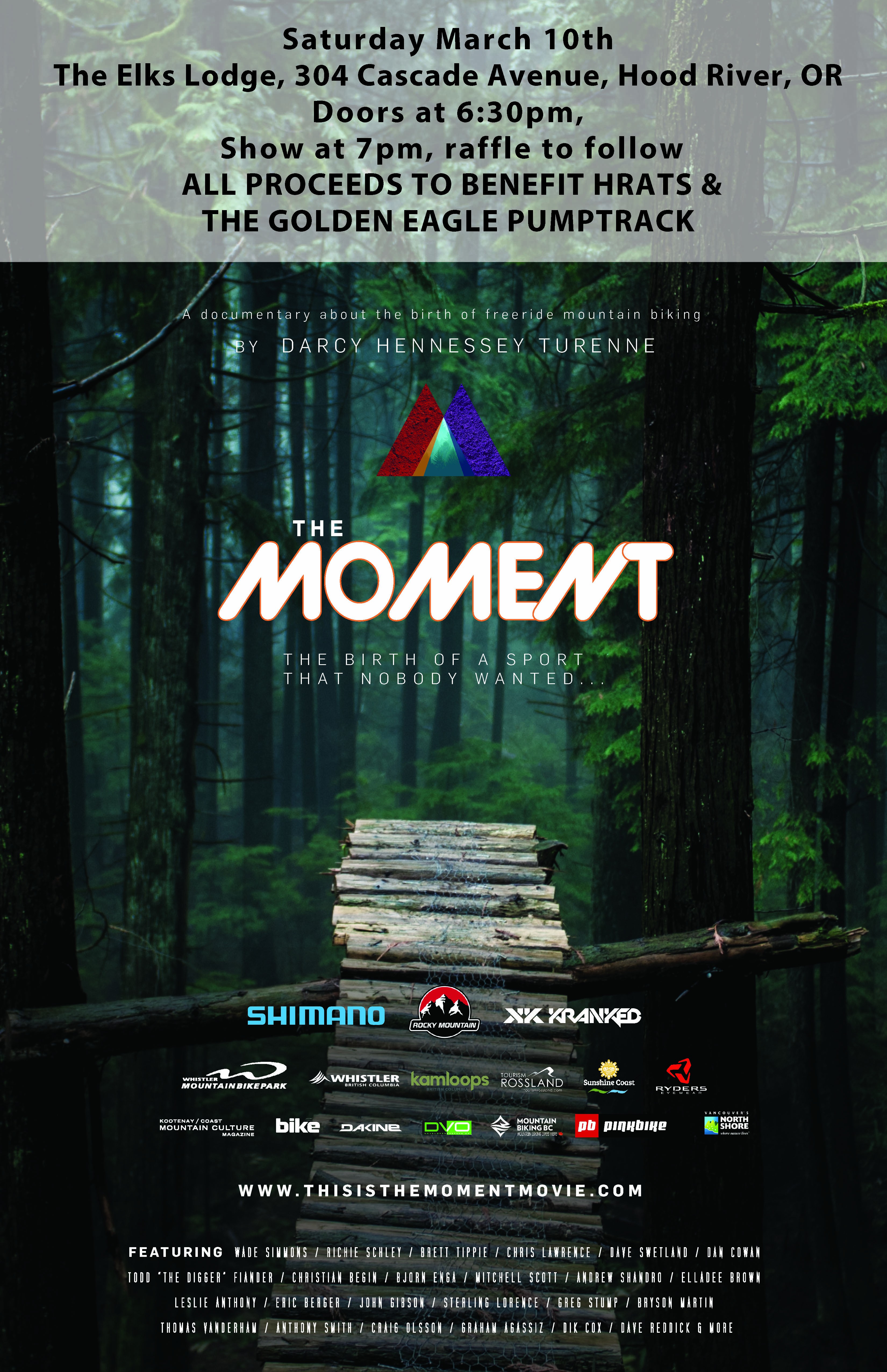 I helped Kickstarter a new bike movie this summer and got talking with the director and now we're premiering the movie this Saturday night at the Elks in Hood River. We're planning to use the event to help raise money for the pumptrack.