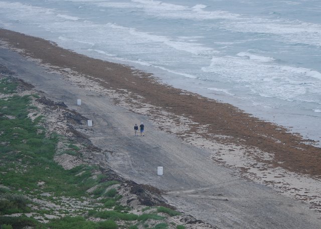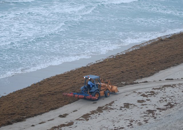 We woke this morning to over a foot deep of seaweed on the beach. This guy has lots of work to do today. The water is fine just a mess on the beach. We rode the 16's mainly yesterday and mowed the lawn a lot.