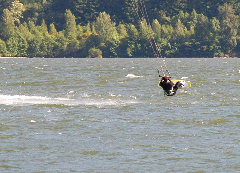 Feeling pressure to perform for the camera - Carl throws a back-roll kite-loop.  Notice - lines aren't crossed.