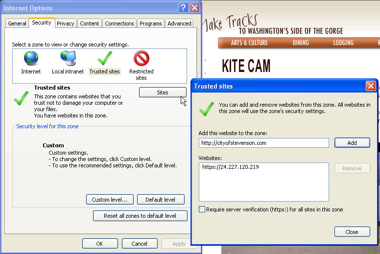 Firefox is loaded and the Kite Cam works in that browser! Woo Hoo! Guess I'll just use Firefox when I want to check out the cam... (I still need IE for work. )