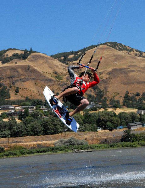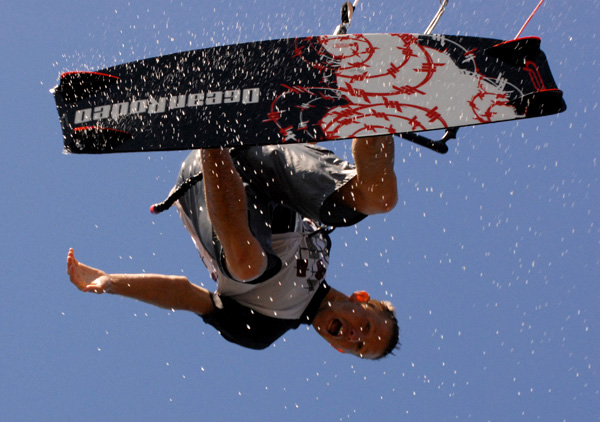 | Big Air, Big Wind...Chanson on the wakeskate.  Much Thanx to Boardrider and Crazy C for the pics!!!!
