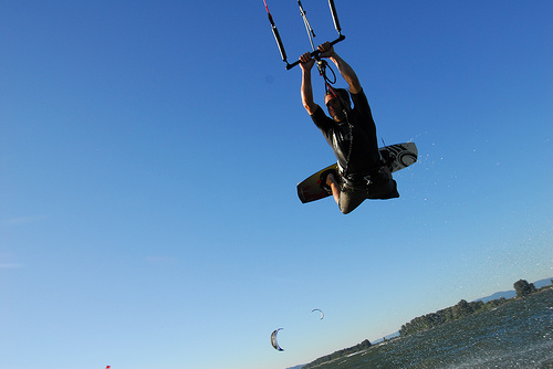 Kiteboarding is fun..Rollo likes to go BIG..and likes it WINDY