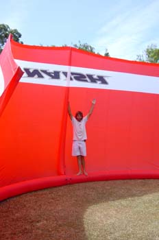 | Get some long lines and you could tangle a couple other kites (and kiters) in your lines and not even notice with that thing...you'd be able to answer the right of way questions with authority.