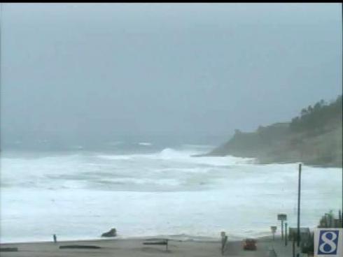 check this out. For those of you who are not familiar with PC, the beach is usually 40-50 or so yards to the water from the logs you see (and the car at the ramp) at the edge of the parking lot. Seas must be crazy today.