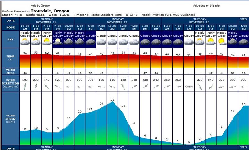 Just watched the local Weather... They're calling for S @ 20-30 with gusts to 50 in the whole portland area tomorow from 7:00 AM til 4:00 PM. So, about 70 or 80 at Rooster??? I'll get up and check it out in the morning... I'll PM you guys with my cell number; let me know where you're heading?