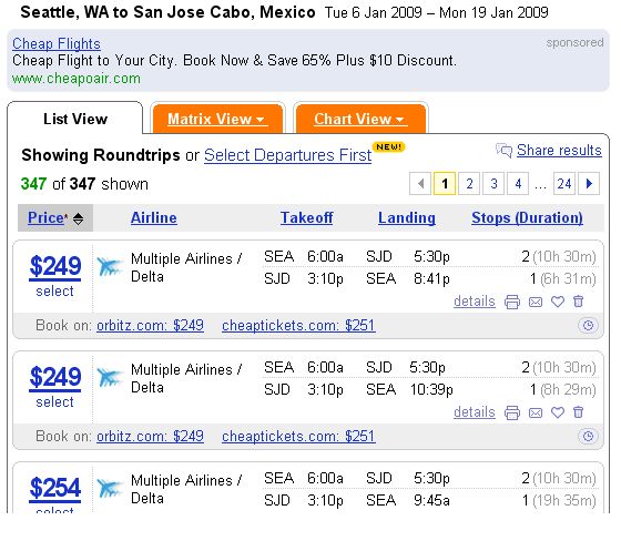 I just did a search and the cheapest I found was $400.. with a connection in Phoenix portland/setac/cabo is $470.